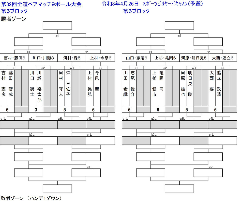 第32回全道ペアマッチナインボール大会組み合わせ発表